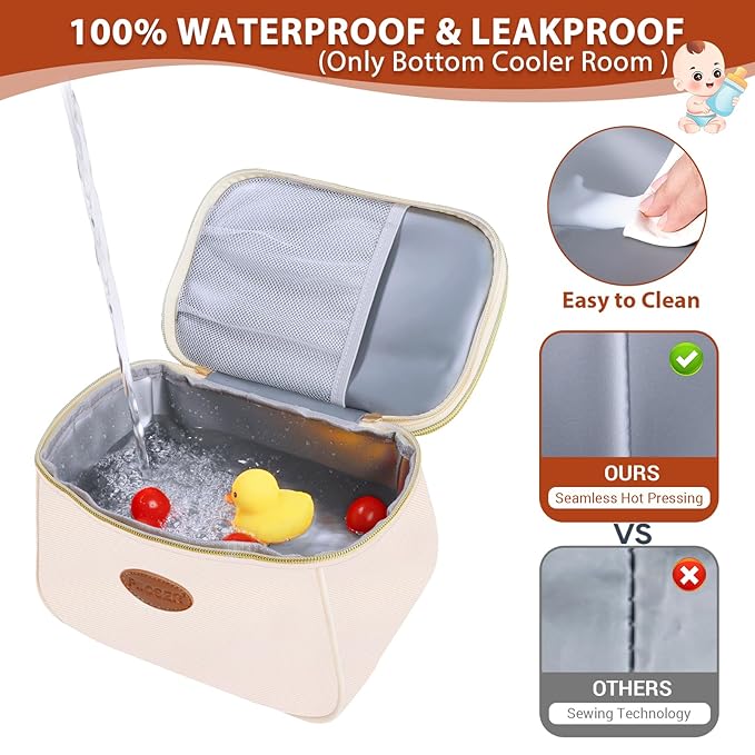 - WATERPROOF & LEAKPROOF Bag: Our food-grade EVA insulated liner adopts hot-pressing technology for 100% waterproof and leak-proof, and 5mm thickened foam keeps cold for up to 6-8 hours(with 2 Ice Packs). It's easy to clean the water or milk stains and just need a towel or damp paper towel.