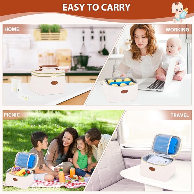 - FRIENDLY ON-THE-GO COOLER BAG: Our cooler bag features a stylish PU tote design, making it easy to carry and convenient for transport while traveling, working, shopping, or picnic. Its compact size allows it to fit inside larger bags, such as a breast pump bag, a large travel diaper tote, or a diaper bag backpack.
