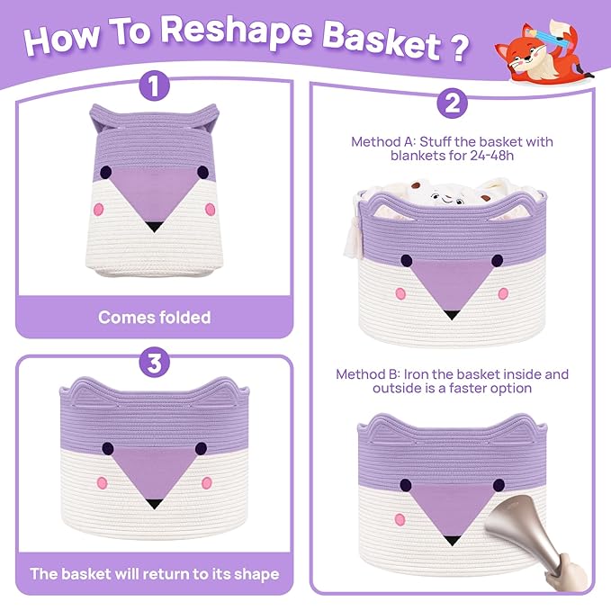 - 【Note】The baby blanket baskets arrive folded, but please don’t worry—this is not a quality issue. You can check out the videos we uploaded. Fill it with blankets and quilt in 24 to 48 hours to make it look round. Then iron the creased places inside and outside the basket. It'll get back to its best shape. This is a basket you’ll use for years. We’ve put a lot of care and love into designing these baskets, and you can trust the quality and craftsmanship.