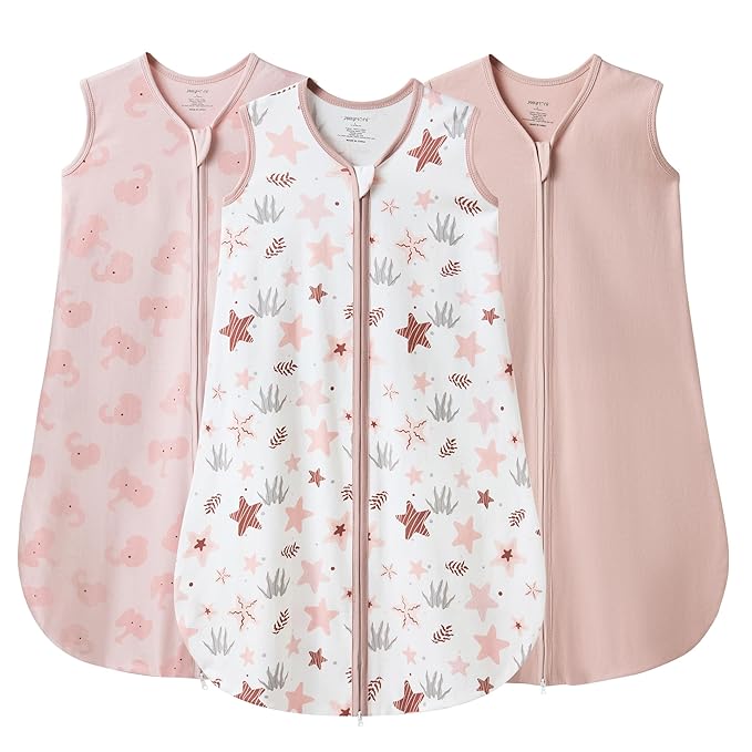 JELLYMONI Baby Sleep Sack 0-6 Months 0.5 Tog Wearable Blanket for Baby, 100% Cotton 3 Pack Infant Toddler Sleeping Sack Lightweight Soft 2-Way Zipper Sleepsack