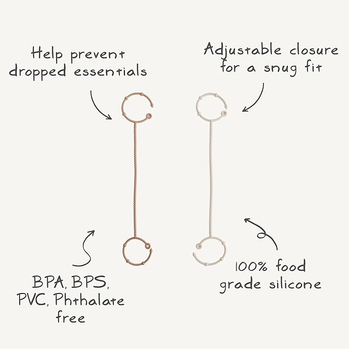 - Ready for Families On The Go: Mushie's adjustable silicone straps keep baby essentials secure so parents and littles on-the-go can enjoy more peaceful outings. Help prevent dropped toys, pacifiers, and sippy cups with these versatile holders designed to attach to strollers, high chairs, car seats, and more.