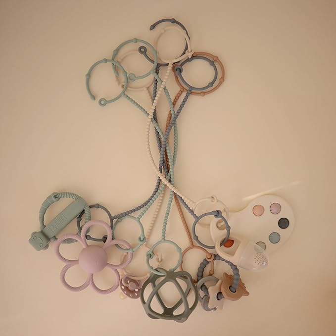 - Ready for Families On The Go: Mushie's adjustable silicone straps keep baby essentials secure so parents and littles on-the-go can enjoy more peaceful outings. Help prevent dropped toys, pacifiers, and sippy cups with these versatile holders designed to attach to strollers, high chairs, car seats, and more.