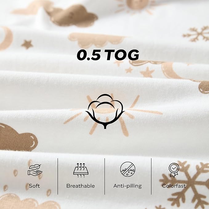 - 0.5 TOG - This baby sleep bag perfect for 23 to 26 °C or 74 to 78 °F,We recommend a heavier TOG during cooler months and a lighter one during warmer months, provide the most comfortable temperature for your baby.