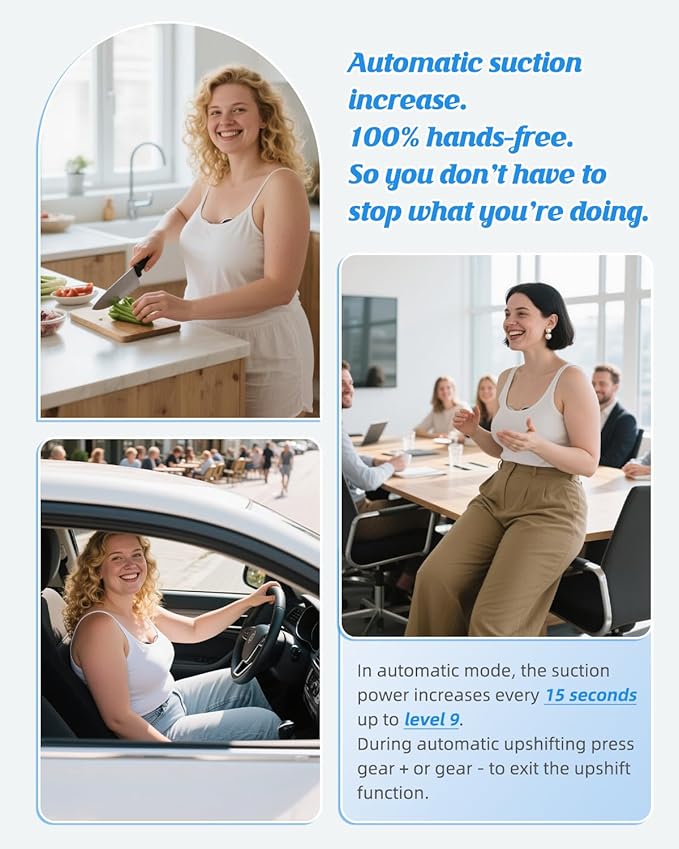 - Special Feature : Adjustable Suction, Hands Free Usage, Low Noise, Memory Function, Wearable