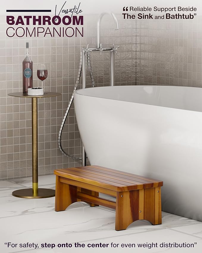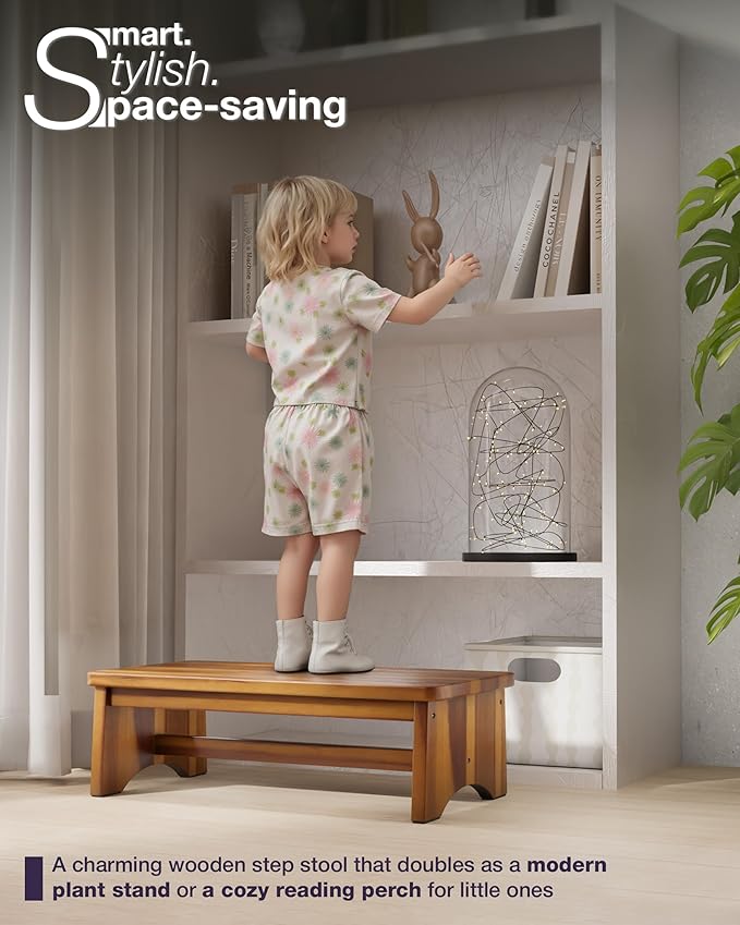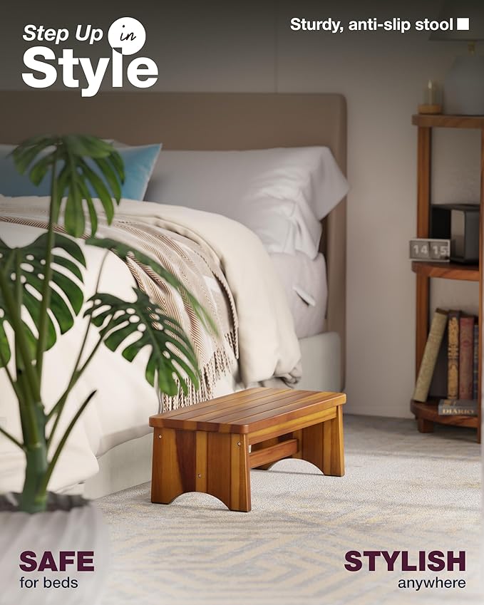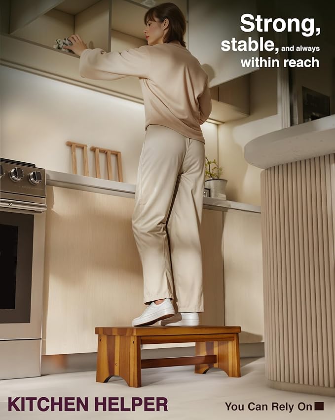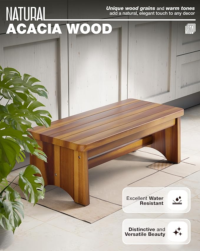 - 🌳 PREMIUM NATURAL ACACIA WOOD: Expertly crafted from high-quality Acacia wood, this step stool offers superior water resistance, exceptional durability, and a naturally elegant wood grain finish that enhances any room's decor.