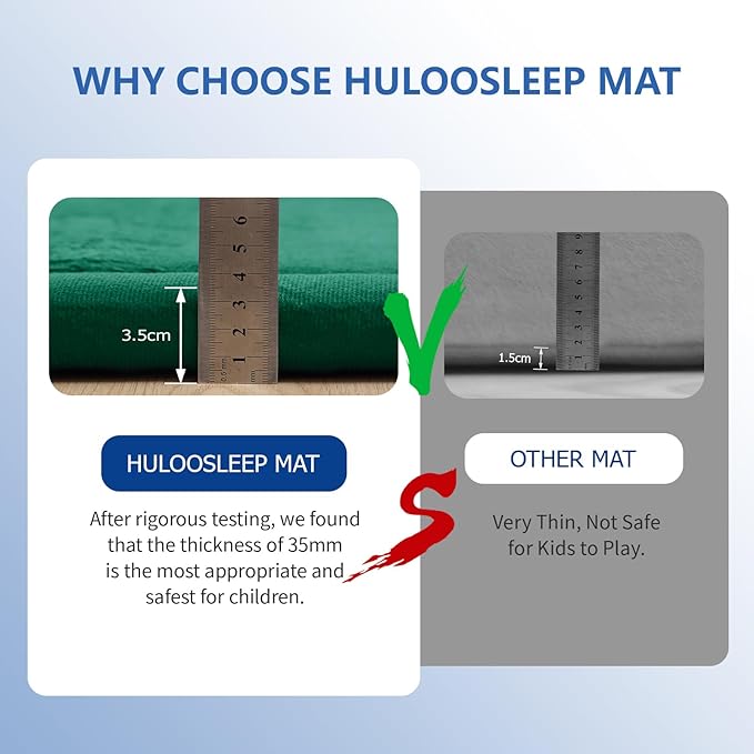 - 【FITS TO MULTIPLE OCCASION】:It can be used as a yoga mat for exercise, a tatami rug for a traditional Japanese style, and is compatible with floor heating. It provides a comfortable spot for adults to relax and watch TV, as well as a pet-friendly cushion for your furry friends to sleep on. The design helps absorb sound, reducing noise in busy homes. With a thickness of 35mm, this kids' play mat ensures your bedroom or living room is an incredibly comfortable personal space. Unlike most baby play mats made of solid plastic that clash with home decor, the HulooSleep Crawling Mat elegantly addresses this issue
