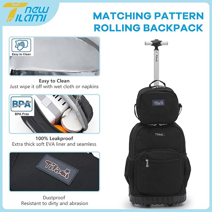 - Durable and Reliable: The New Tilami rolling backpack for children is constructed from waterproof and tear-resistant materials, ensuring longevity and suitability for both academic and travel purposes.