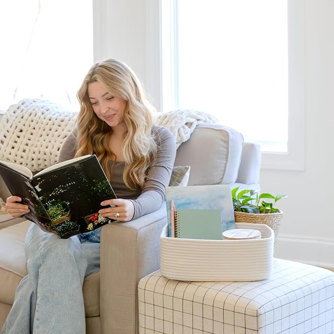 - Safe, Natural Cotton Organizer Bins: Crafted from the highest quality material in the market, our storage bins are oh-so-sturdy (and cute) and ready to take on little humans. They’re 100% safe, so you can rest easy if teething toddlers take a nibble. Reinforced Hidden Handles: Now you see ‘em, now you don’t! With completely hidden handles that blend seamlessly into the rope basket, you’ll be the Houdini of home organizing. They’re even double-stitched and reinforced for extra heavy loads!