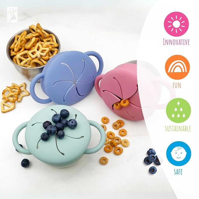 - PERFECT FOR EVERYDAY SNACK: With easy grip side handles, these snack cups are made for tiny hands to hold. The soft silicone catcher keeps snacks safely inside. Lightweight and portable, these cups are great for indoor fun or outdoor adventures. Plus, they fit into most cup holders - strollers, car seats, and more.