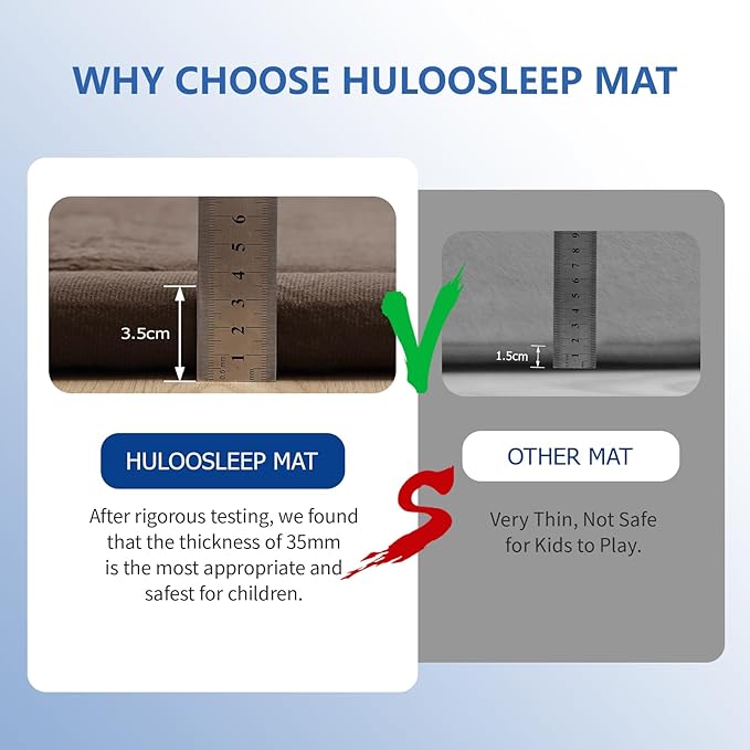 - 【FITS TO MULTIPLE OCCASION】:This versatile mat works as a yoga mat, tatami rug, and is compatible with floor heating. It provides a cozy spot for adults to relax, doubles as a pet-friendly cushion, and absorbs sound to reduce noise. With 35mm thickness, it enhances your bedroom or living room. Unlike typical plastic play mats, the HulooSleep Crawling Mat blends seamlessly with home decor, offering both functionality and elegance in one.