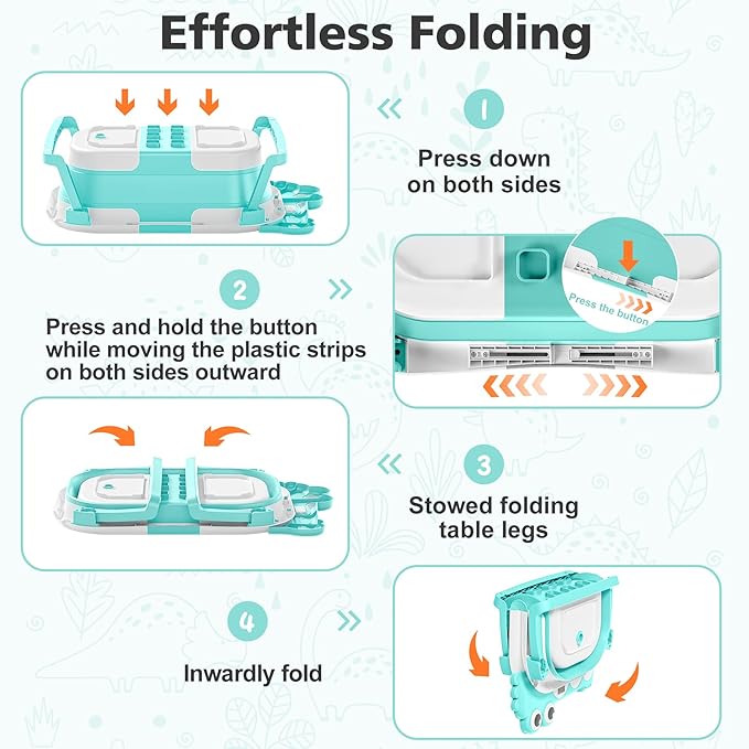 - Innovative Double-Fold Design: Our baby bathtub boasts a space-saving double-fold design, measuring under 4 inches in thickness. This allows for easy storage in tight spaces and enhances portability, perfect for both home use and travel. The off-the-floor drain with a user-friendly rubber plug ensures seamless water drainage without the need for relocation.