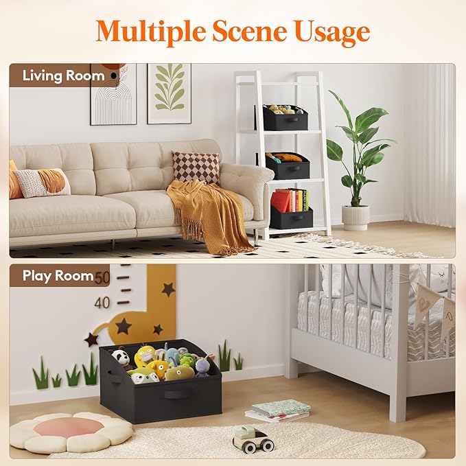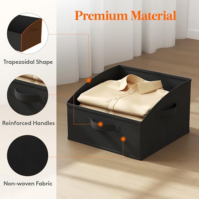 - Premium Material: Crafted from high-quality non-woven fabric, these closet organizer bins are supported by thick cardboard on the sides and bottom, ensuring a sturdy structure that resists deformation. This robust construction guarantees long-term use and excellent load-bearing capacity. Additionally, the bins are foldable, allowing for space-saving storage when not in use.