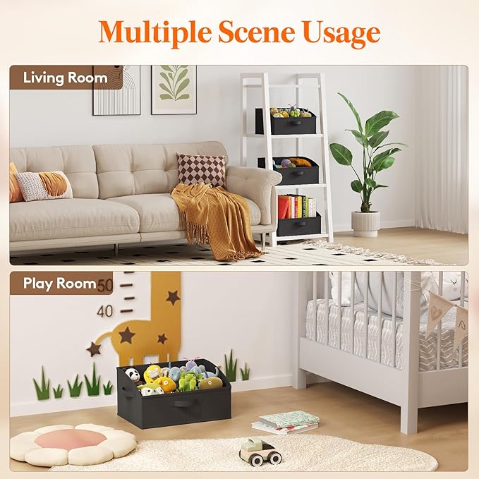 - Premium Material: Crafted from high-quality non-woven fabric, these closet organizer bins are supported by thick cardboard on the sides and bottom, ensuring a sturdy structure that resists deformation. This robust construction guarantees long-term use and excellent load-bearing capacity. Additionally, the bins are foldable, allowing for space-saving storage when not in use.