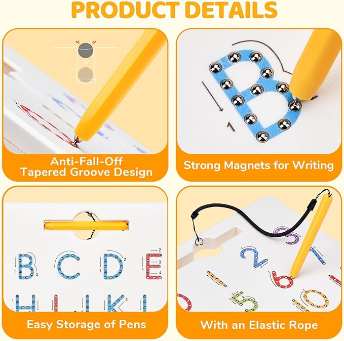 - Interactive Learning Experience: As children trace letters and numbers with a stylus, metal beads pop up and create sound, providing visual and auditory feedback. This significantly enhances the interactive and fun aspects of learning. Letters and numbers can be easily erased with a finger, setting the stage for the next round of practice