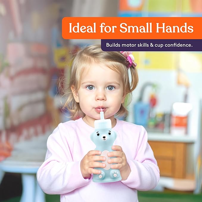 - Smart Therapy Sippy Bottles – A squeezable honey bear design with long, flexible straws, this Juice Bear bottle with 3 reusable straws makes it easy to squeeze out liquid and get a drink even if a child or adult has low suction or special needs.