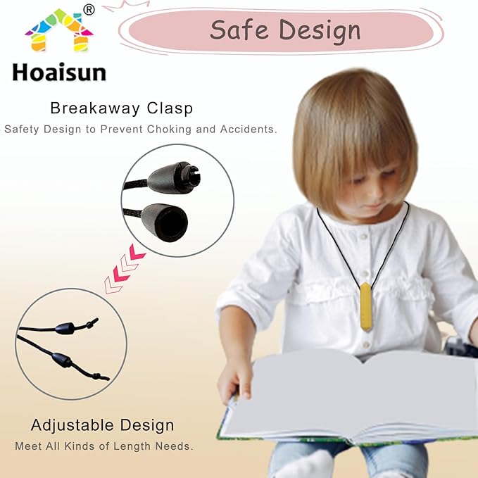 - Widely applications - Hoaisun teething neckalce for baby come in a variety of styles, can be used for any age. Autism adult chew necklace can be used as a stim toys, or as an oral motor therapy tools for kids with autism. And it is also a very suitable toddler chew necklace, which can relieve the baby's teething pain, which will not hurt your baby's teeth.