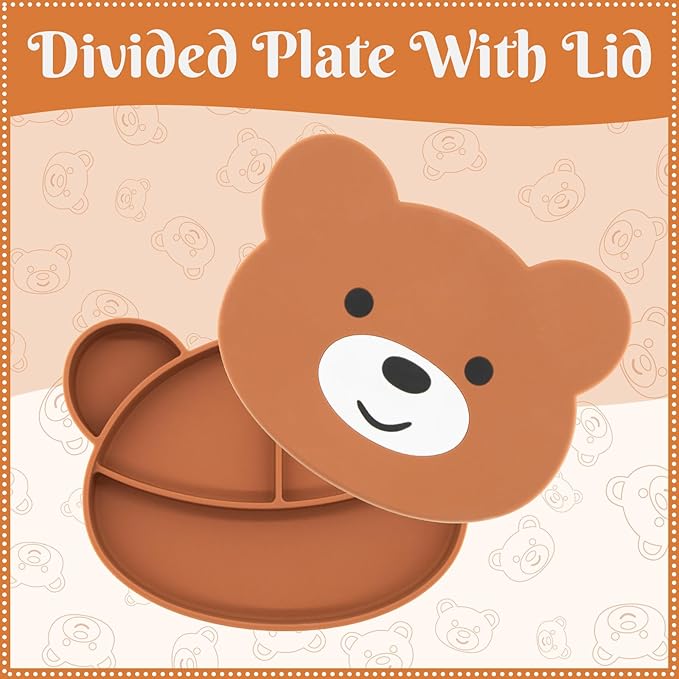 - Baby Feeding Set: Get your baby to love mealtime and free up mom's hands! This 7-piece baby feeding set includes 1 Bear snack cup, 1 Bear simple cup, 1 Bear spoon, 1 Bear bowl, 1 Bear fork, 1 Plate with lid, 1 Bear bib