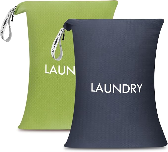 MissBoy 2 Pack Laundry Bags, Nylon Washable Wet Dry Bag, Travel Laundry Bags for Dirty Clothes, Swimming Bathing Suit Workout Wet Clothes Bag