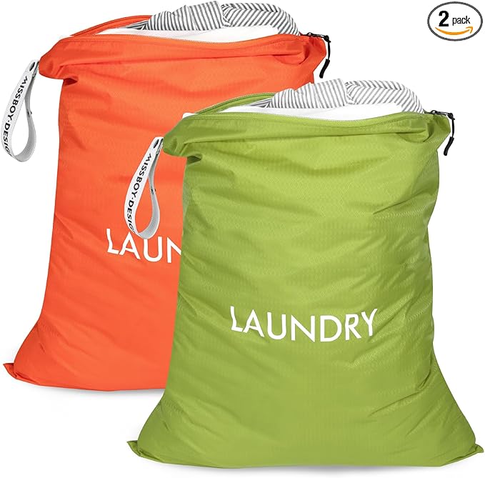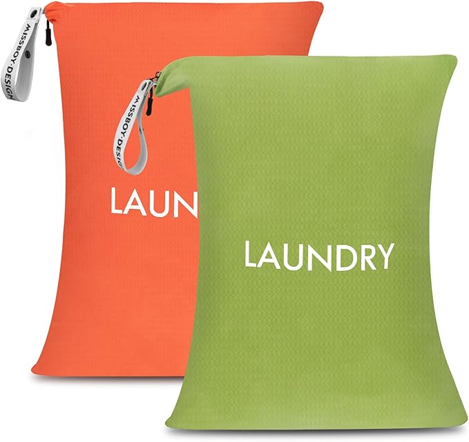 MissBoy 2 Pack Laundry Bags, Nylon Washable Wet Dry Bag, Travel Laundry Bags for Dirty Clothes, Swimming Bathing Suit Workout Wet Clothes Bag