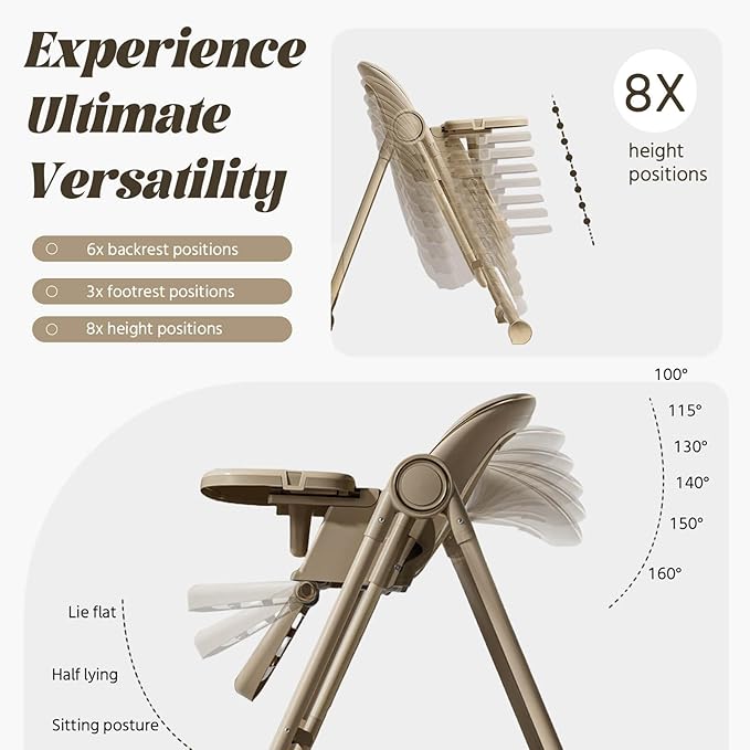 Multi Functional All in 1 Baby High Chair Swings for Infants Foldable Rocking 8 Level Height Adjustment Eco Friendly Washable PU Cushion Ultimate Baby Feeding Chair (Brown)