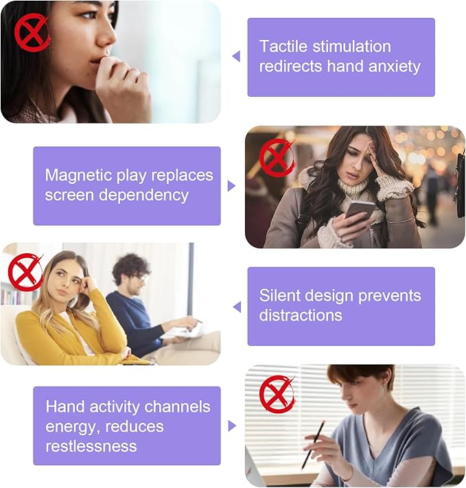 - Silent Stress Relief & Focus Enhancement: Soft silicone-coated magnetic fidget balls provide quiet, distraction-free play to reduce anxiety, improve concentration, and calm nerves—perfect for offices, meetings, or study sessions.