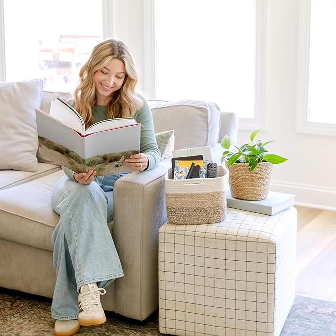 - Safe, Natural Cotton Organizer Bins: Crafted from the highest quality material in the market, our storage bins are oh-so-sturdy (and cute) and ready to take on little humans. They’re 100% safe, so you can rest easy if teething toddlers take a nibble.