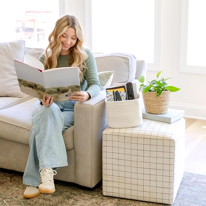 - Safe, Natural Cotton Organizer Bins: Crafted from the highest quality material in the market, our storage bins are oh-so-sturdy (and cute) and ready to take on little humans. They’re 100% safe, so you can rest easy if teething toddlers take a nibble.