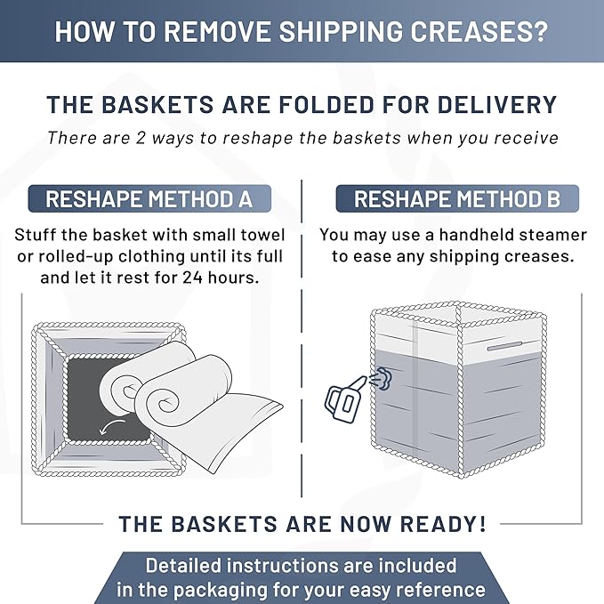- Say goodbye to wrinkly, floppy baskets! Ours stays firm and structured—no permanent creases. Made with quality rope and a unique folding method, it’s easy to shape with the included instructions. Unlike others, it keeps its form beautifully.