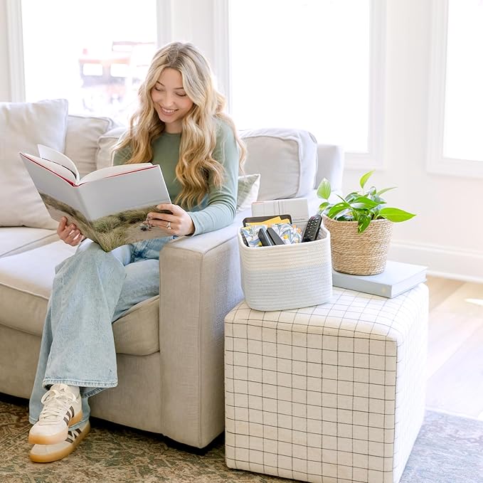 - Safe, Natural Cotton Organizer Bins: Crafted from the highest quality material in the market, our storage bins are oh-so-sturdy (and cute) and ready to take on little humans. They’re 100% safe, so you can rest easy if teething toddlers take a nibble.