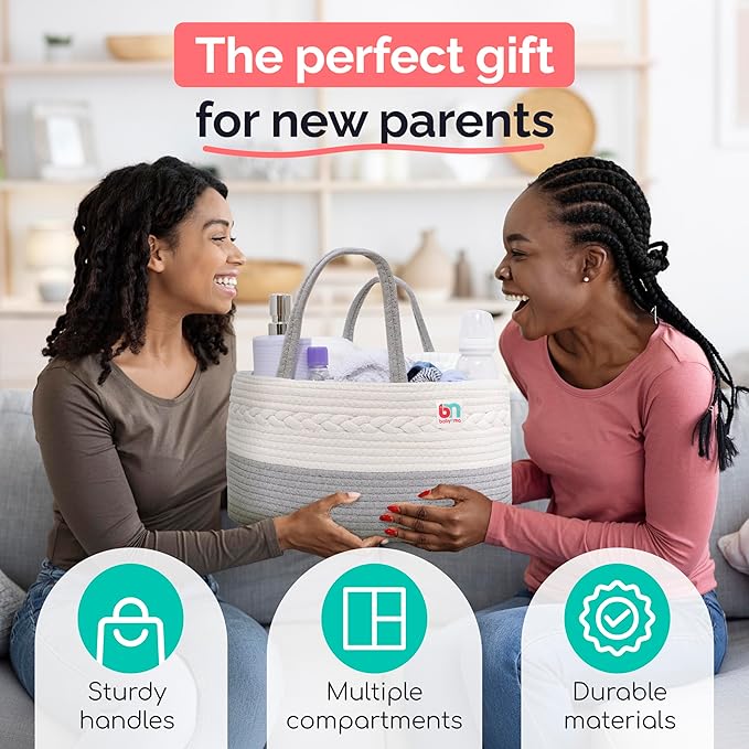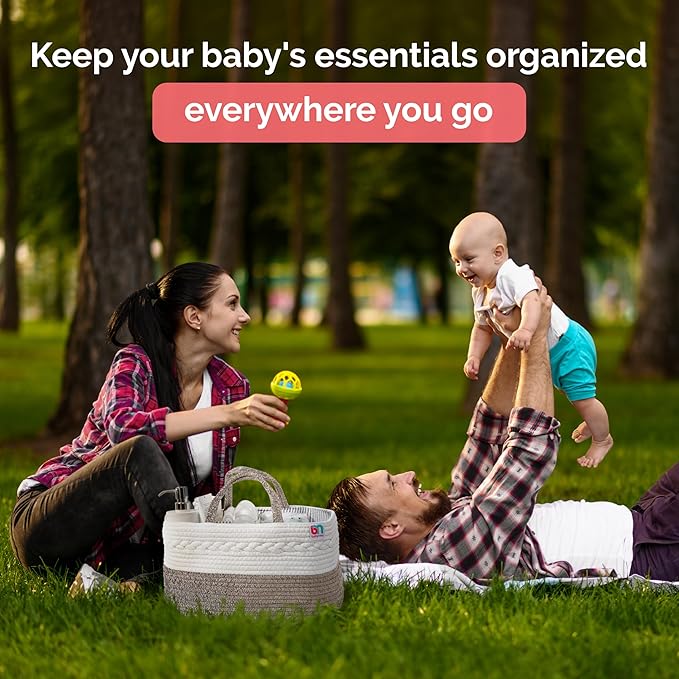Rope Diaper Caddy - Storage for Baby and Toddler Items - Portable Cotton Organizer Easily Holds Diapers, Wipes, Clothing - Useful for Nursery, Bedroom (Gray, Regular)