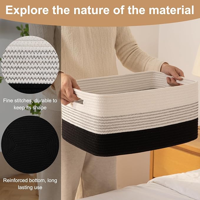 - Soft and Durable: Hand-stitched from high-quality natural cotton rope. Our baskets are very soft and baby-friendly. Seamless design, with no odor or sharp edges, not easy to tear, Great for nurseries storage and closet organization