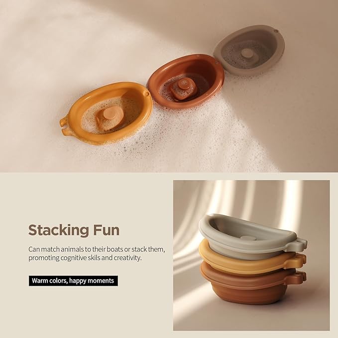 - - Multi-Functional Toys: Includes 3 brightly colored boats and 3 adorable finger puppets, promoting toddlers' color recognition and animal cognition, enhancing their creativity and imagination.
