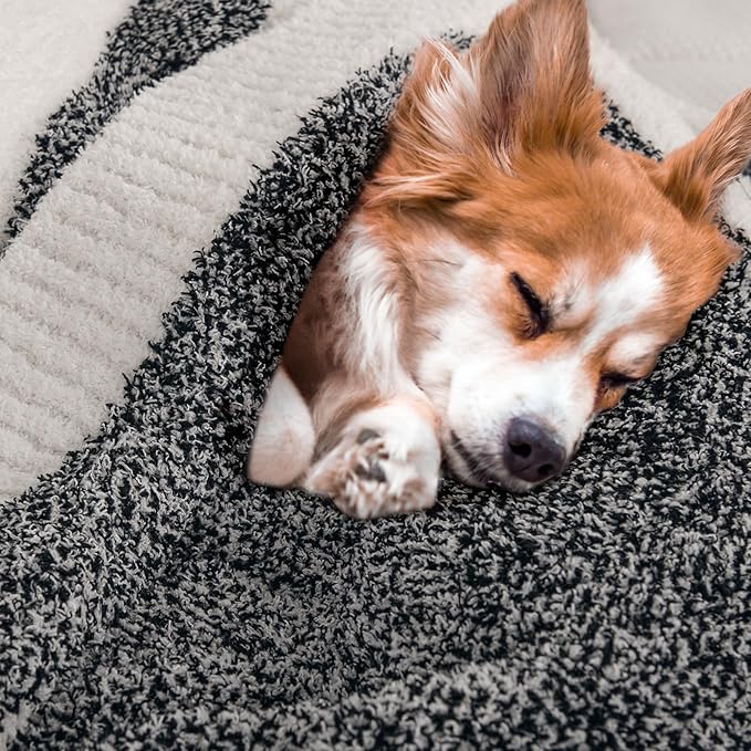 NEXHOME PRO Stripe Throw Blanket, Knit Blanket for Couch Bed Sofa Picnic, Ultra Soft Fuzzy Blankets, Luxury Striped Blanket for Women, Pet, Gifts, Black, 50 x 60 inches