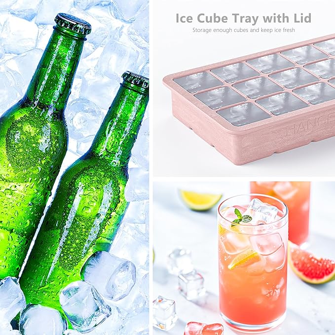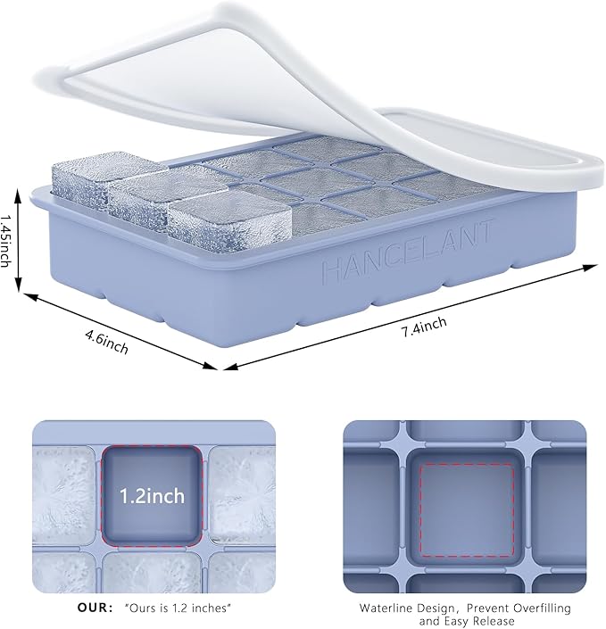 Silicone Ice Cube Tray 3 Pack, HANCELANT Ice Cube Mold, Ice Trays for Freezer with Lid for Whiskey, Baby Food, BPA Free, Easy Release