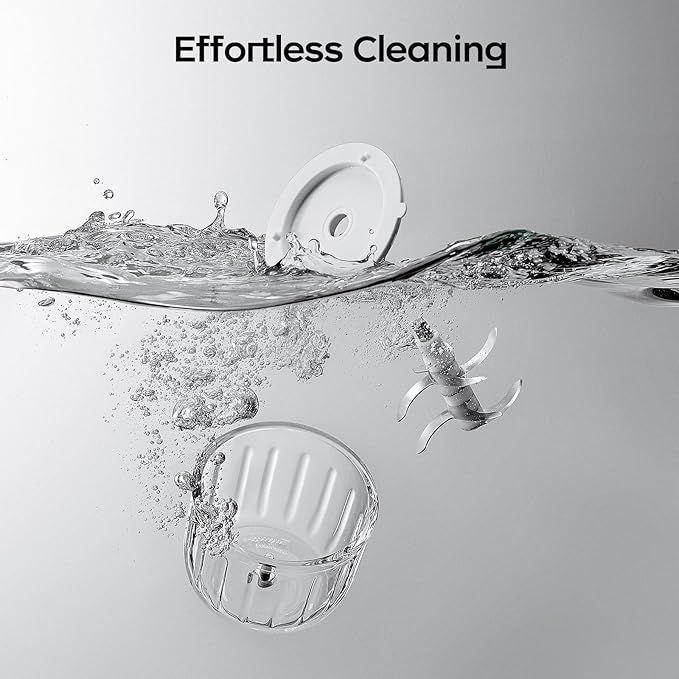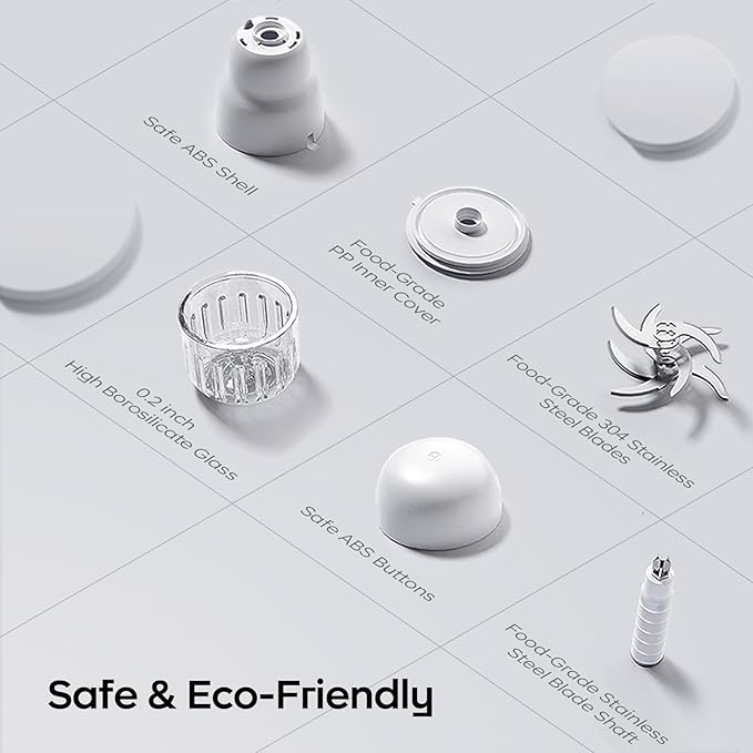 - 【Premium Safety & Design】Crafted with food-grade materials for worry-free use: a durable glass bowl, stainless steel blades, and BPA-free PP plastic. The built-in safety lock and automatic shut-off feature (activates when tilted or detached) ensure maximum safety. The blade stays securely inside the cup during removal, preventing accidents. Its sleek, modern design adds a touch of elegance to your kitchen.
