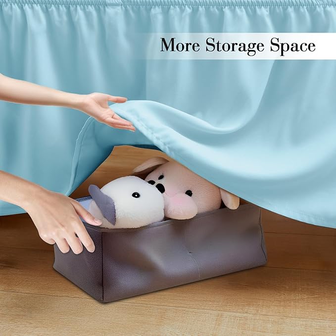 - Elegant Ruffled Design: Enhance your nursery with our light blue crib skirt, featuring flowy ruffles that add a charming touch to any theme, from whimsical to farmhouse aesthetics. 14" drop design helps to conceal easily storage space under the toddler bed.