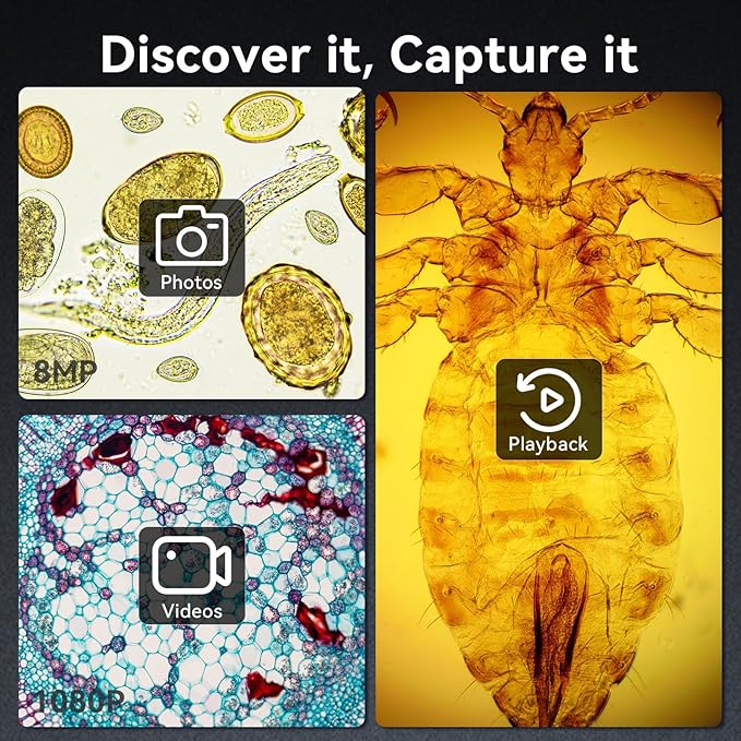 - Capture 8MP Photos & 1080P Videos: Merging high-resolution imaging with microscopy, the built-in camera captures every vivid detail—far beyond what regular electronic microscope can show, making learning both exciting and memorable