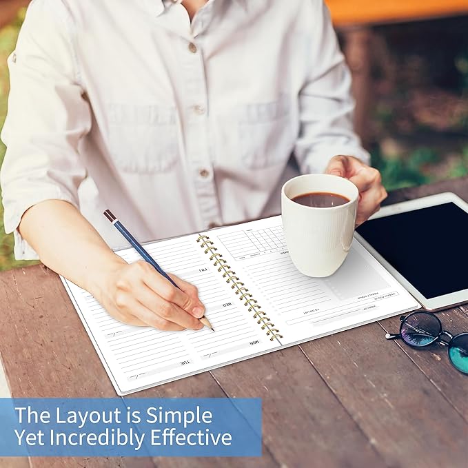 Undated Weekly Planner, Weekly To Do List Notebook with Goal & Habit Tracker Organizer, A5 5.8" x 8.0" Weekly Planner Notebook with Spiral Binding for Men or Women