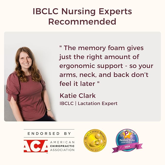 - [Ergonomic Comfort and MaxSupport] Made of 100% safe memory foam. Different from other nursing pillows, the Momcozy original breastfeeding pillow is like a combination of "powerful hands"and "fluffy clouds", comfortably ergonomic supporting baby and mom's arm, maintaining at the ideal height and position for better latching. No more pain and sore arms, more confident and healthier nursing
