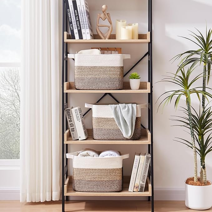 OIAHOMY Storage Basket, Woven Baskets for Storage, Cotton Rope Basket for toys,Towel Baskets for Bathroom - Pack of 3, Gradient Dark Brown