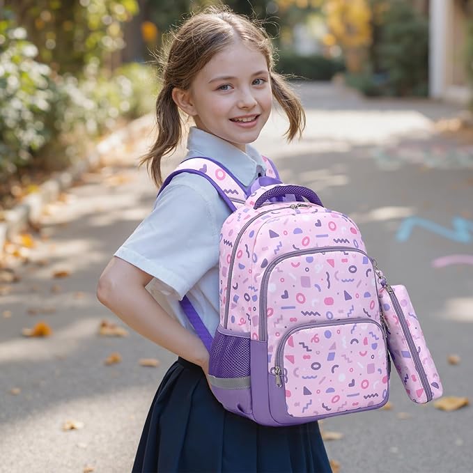 mygreen 3PCS Kids Backpack Set - Waterproof Bookbag with Lunch Box for Girls Ages 3-12, Adorable Cartoon Prints for School & Outdoor Use Pink Dogs