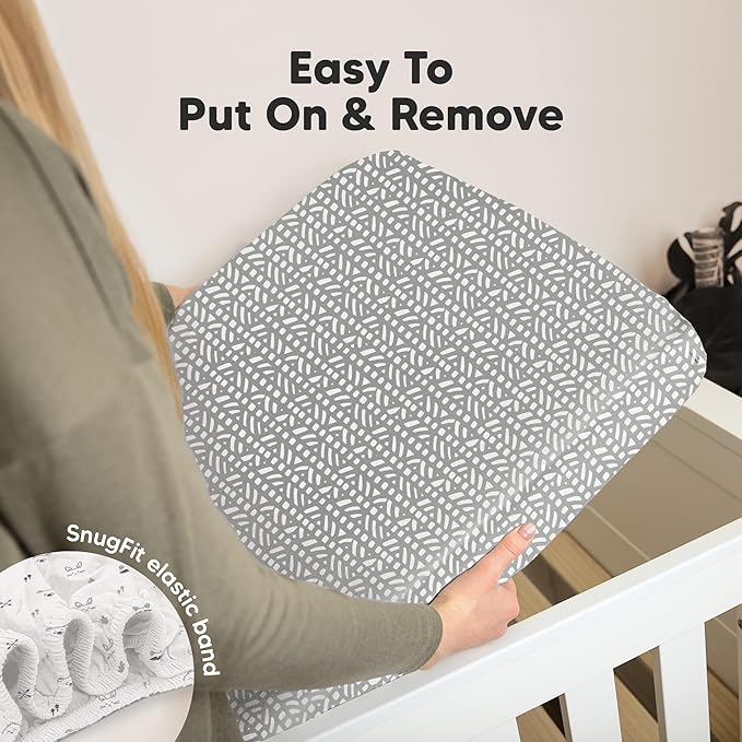 - High Quality Elastic Band - Our organic cotton crib sheets, use premium elastic SnugFit Band seamlessly concealed to ensure these standard crib sheets stay in place securely for safe and soothing sleep.