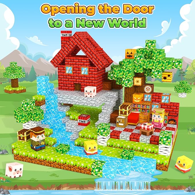 - MAGNETIC BUILDING BLOCKS - The 120-piece magnetic blocks set features dual themes: stone house and forest. It contains 25 carefully designed building blocks that are compatible with Magnet Cubes of the same size. Expand the existing set and make children's building world more colorful.