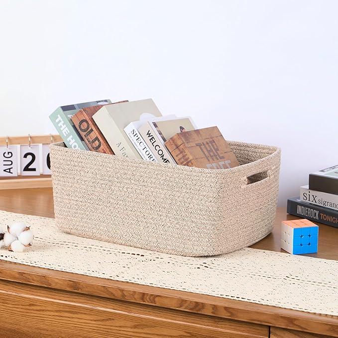 - [ Stylish Design ]: With a modern minimalist design, our woven rope baskets are a chic alternative to traditional rattan. They’re perfect for closets, changing table organizer, and cube shelves, adding warmth and texture to any room while tackling home clutter