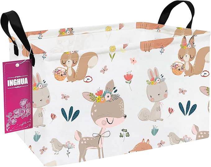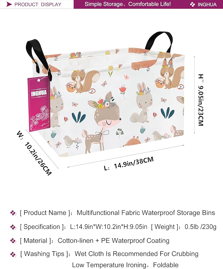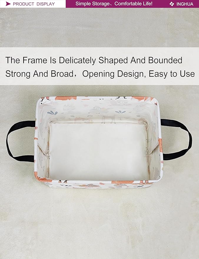 Rectangular Storage Basket Fabric Organizer Bin for Toys,Books,Clothes,Gifts,Pets-Perfect for Home,Office,Nursery,Dorm,Shelf(Rec-colorful animal )