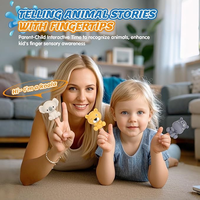 - 【𝐒𝐞𝐧𝐬𝐨𝐫𝐲 𝐃𝐞𝐯𝐞𝐥𝐨𝐩𝐦𝐞𝐧𝐭】This toddler toys for 1-3 year old boy/girl, helps enhance their finger sensitivity while providing chances to explore different textures. We can also use this set of finger puppets to tell animal stories to our little ones. This not only strengthens the parent - child relationship but also helps your toddler recognize animals, colors, enhancing their finger sensory awareness.Ideal sensory toys for toddlers 2-3 that nurture growth
