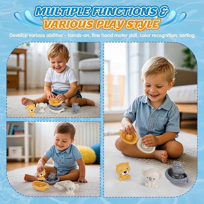 - 【𝐁𝐞𝐬𝐭 𝐆𝐢𝐟𝐭 𝐓𝐨𝐲𝐬 𝐟𝐨𝐫 1-𝟥 𝐘𝐞𝐚𝐫 𝐎𝐥𝐝 𝐁𝐨𝐲/𝐆𝐢𝐫𝐥】It can be used as a birthday gift, or a Christmas gift. This toys gifts for 1 year old boy/girl is not only a fun bath toy toddler toys suitable for use in water areas such as bathtubs, swimming pools, and beaches but can also be used as a stacking toy/finger puppet set, create interactive animal stories to teach colors, names with your little one at house floor