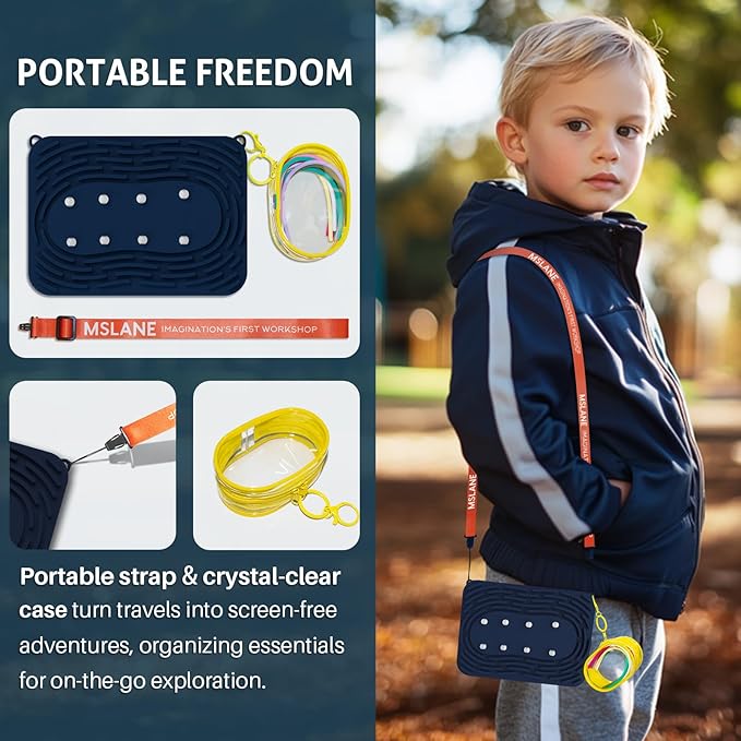 - Screen-Free Entertainment Anywhere In a world flooded with screens, we empower kids with anywhere-accessible screen-free entertainment. The portable strap and storage case make it an ideal travel toy for trips to grandma's house, airport lounges, or church's quiet time, while minimizing string loss risks through organized storage solutions