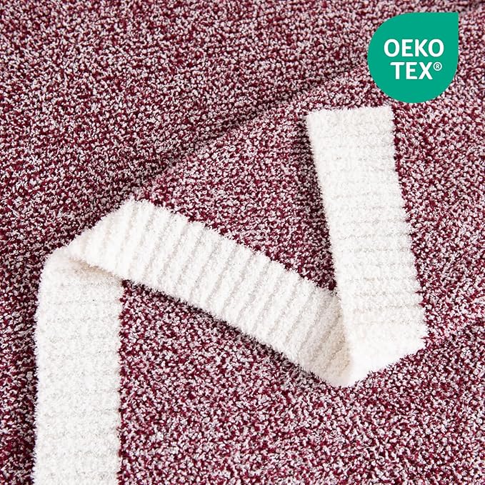 NEXHOME PRO Soft Twin Blankets for Couch, Reversible Warm Blankets Cozy Knit Blanket for Women, Fuzzy Plush Lightweight Throws for Sofa, Bed, Picnic, Wine 60 x 80 inches