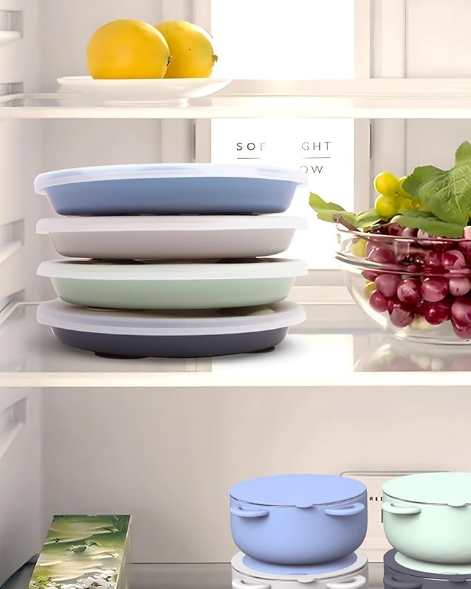 - Mess-Free Storage for Busy Parents: The soft silicone lid keeps food covered for travel or fridge storage. It's not leakproof, but it keeps smells contained and lets you stack meals easily—great for families with more than one hungry kid. Optimized wall height guides utensils to mouths successfully, boosting independent eating confidence with our stainless steel plates